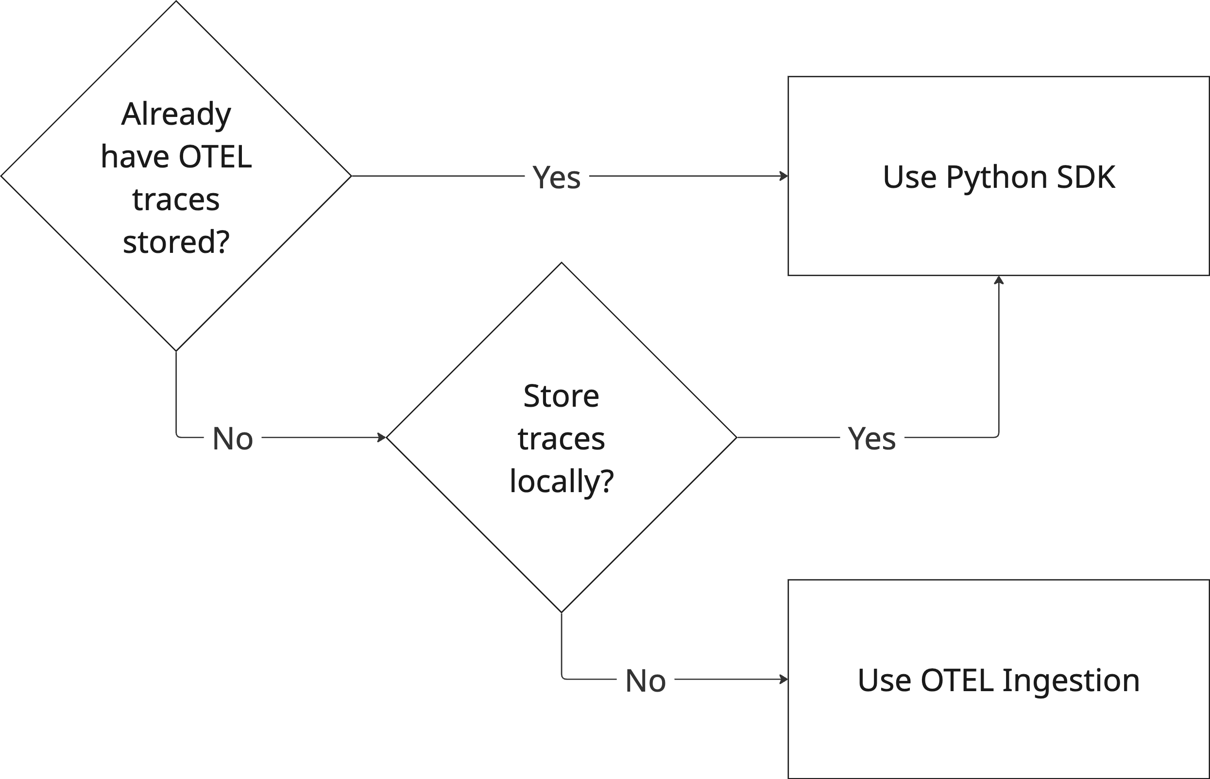 | SDK Log Ingestion    | <ul><li>Most flexible, can contain a full trace as part of a log line</li><li>Can backfill previously logged data</li></ul>                                                                                       | <ul><li>Requires Python SDK code to be written and scheduled as part of external orchestration service</li></ul> |