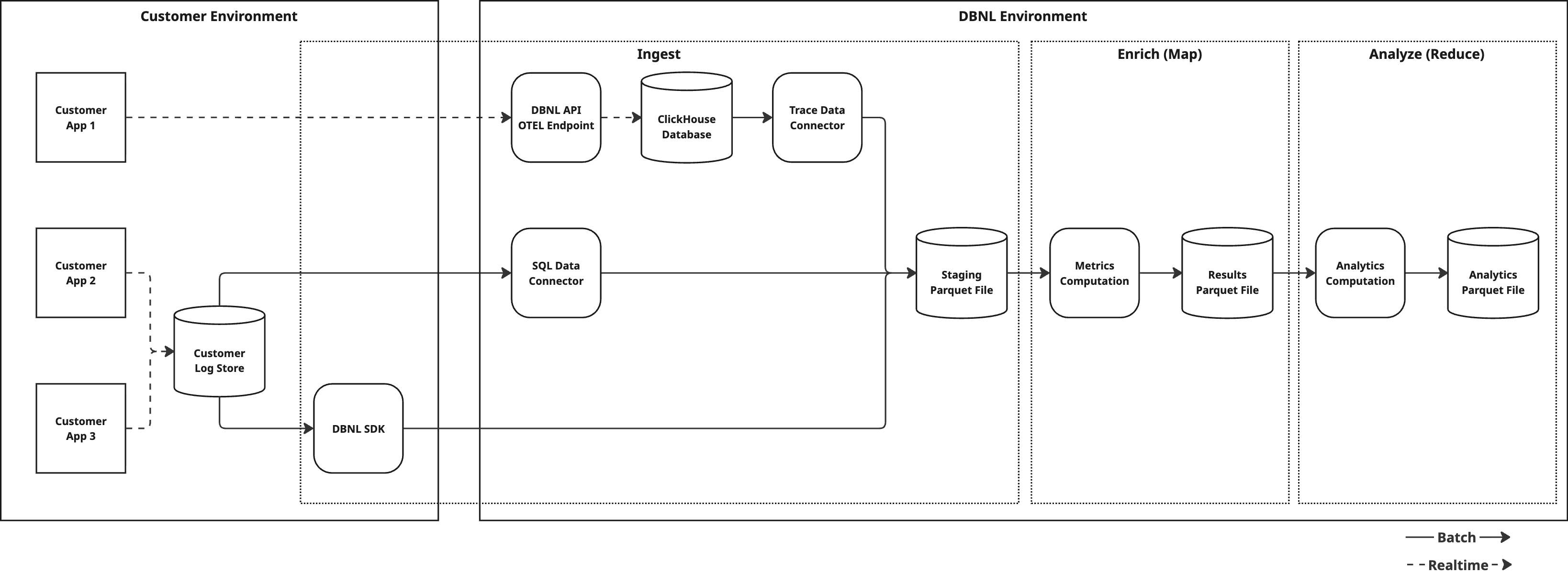 The Data Pipeline is how DBNL converts raw production AI log data into actionable [Insights](https://docs.dbnl.com/workflow/insights) and [Dashboards](https://docs.dbnl.com/workflow/dashboards) for each [Project](https://docs.dbnl.com/workflow/projects) and stores it for future analysis within the [Data Model](#data-model).