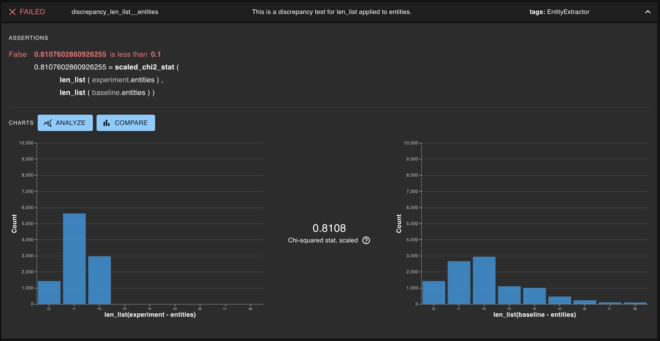 Once you have data in Distributional, you can conduct continuous integration testing by creating tests which define consistent behavior between the current status of the app and the baseline as defined earlier.