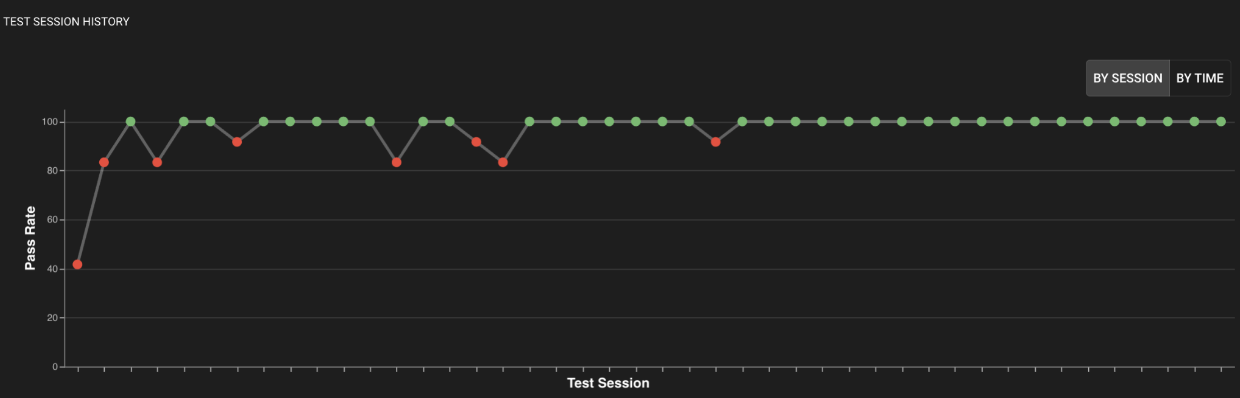 You also have the opportunity to set a Baseline Run Query, which gives you the freedom to define how far into the past you want to look to define “consistency”.  After setting the Baseline, your tests will utilize it by default; you can override it at test creation time. Over time, your project will graphically render the health of your app, as shown below.