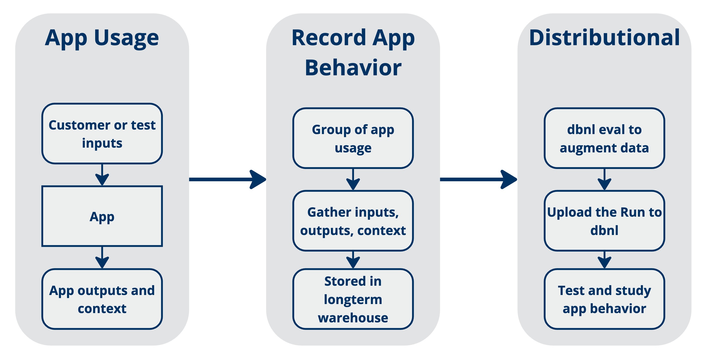Distributional uses data generated by your AI-powered app to study its behavior and alert you to valuable insights or worrisome trends.  The diagram below gives a quick summary of this process: