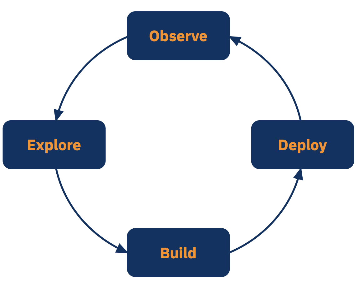 * This occurs during the **Deploy** step and in the arrow to the **Observe** step