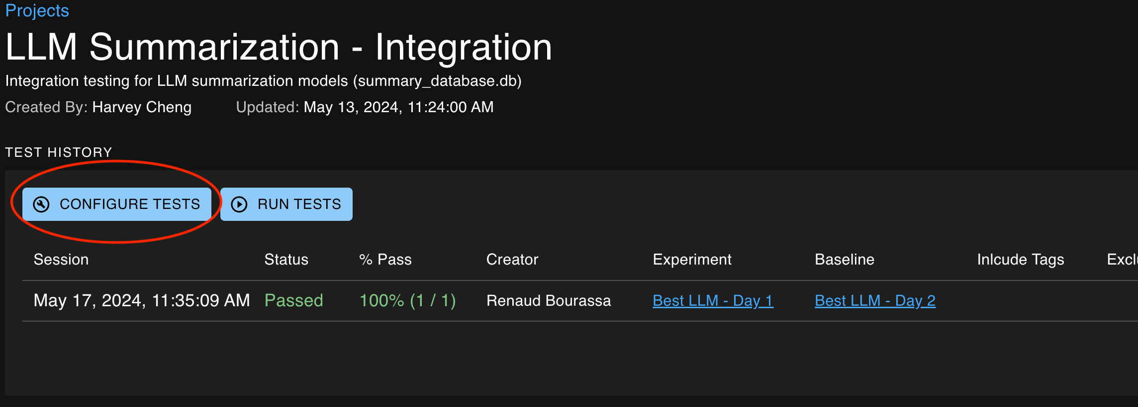 Close a new run in that project