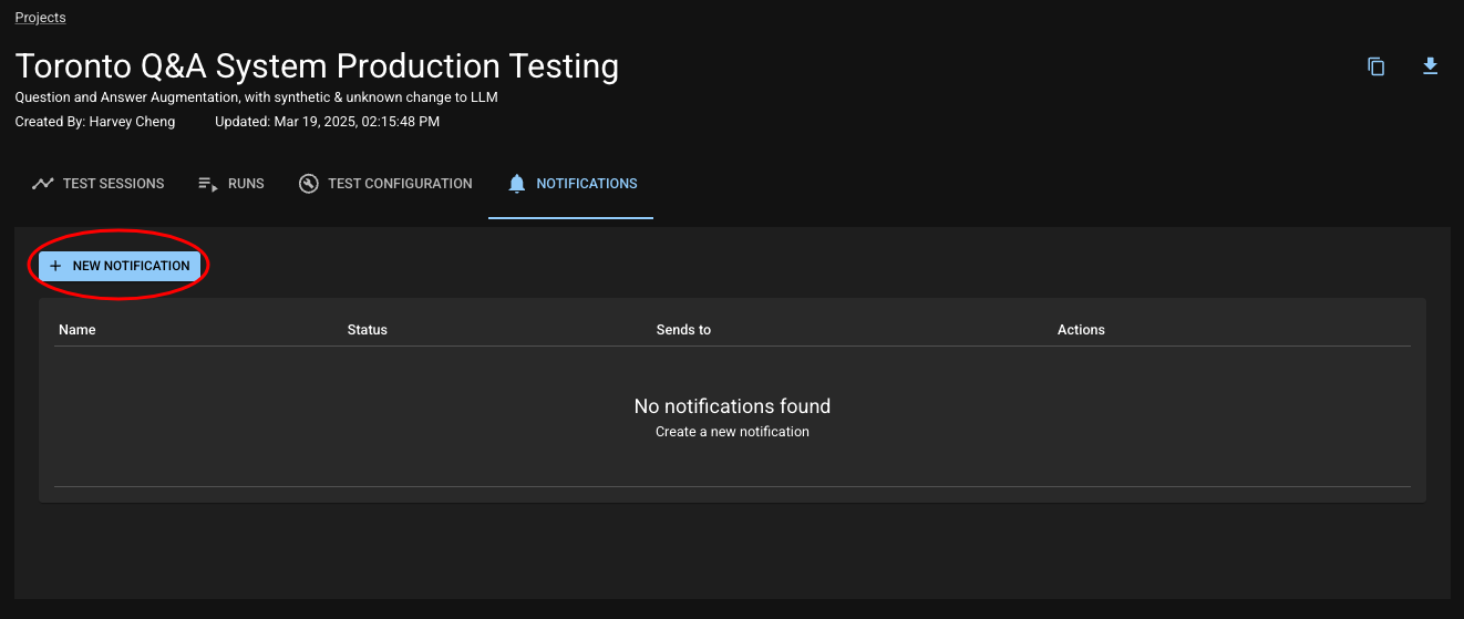 Notifications provide a way for users to be automatically notified about critical test events (e.g., failures or completions) via third-party tools like PagerDuty and Slack.