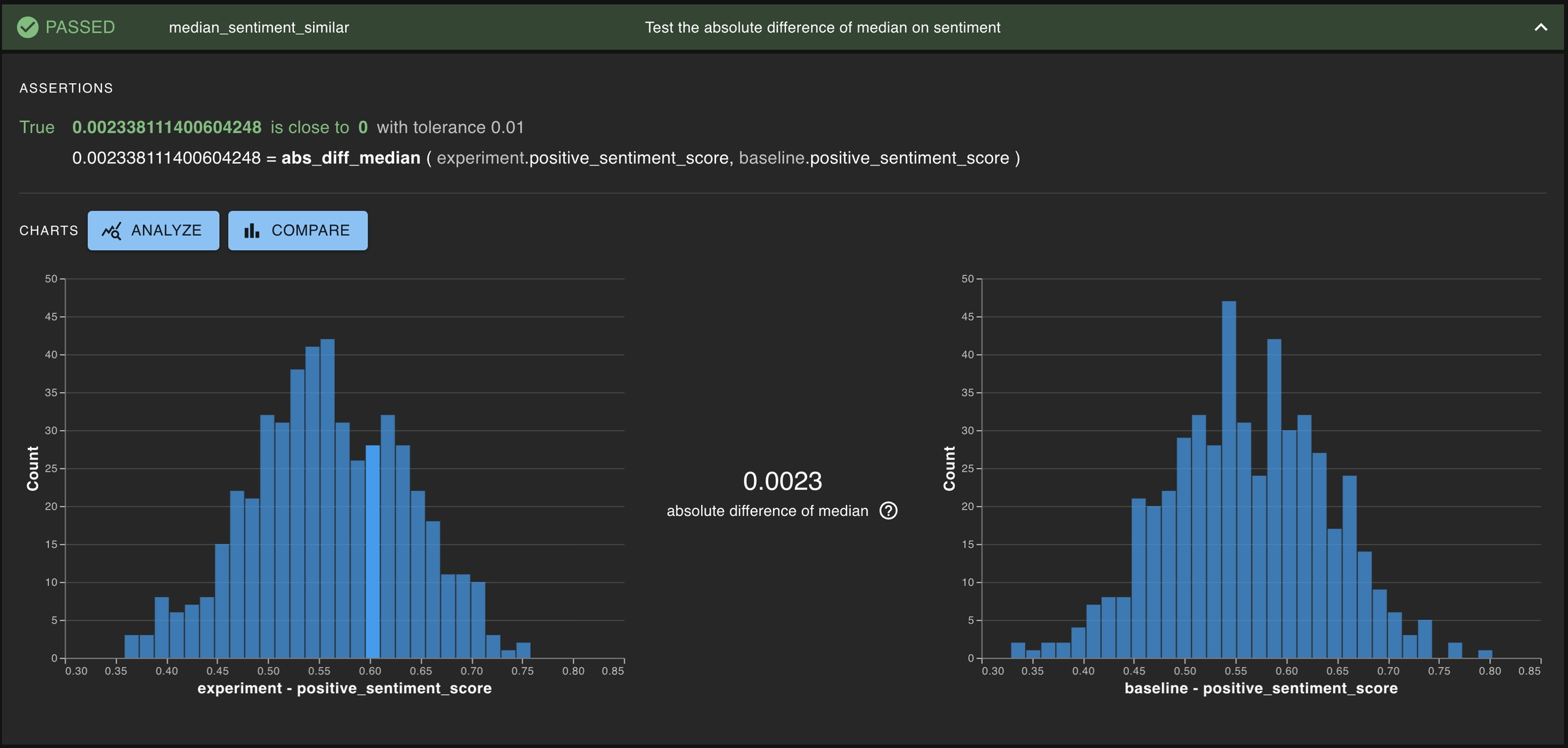 absolute difference of medianofpositive_sentiment_scoreagainst the baseline is close to0