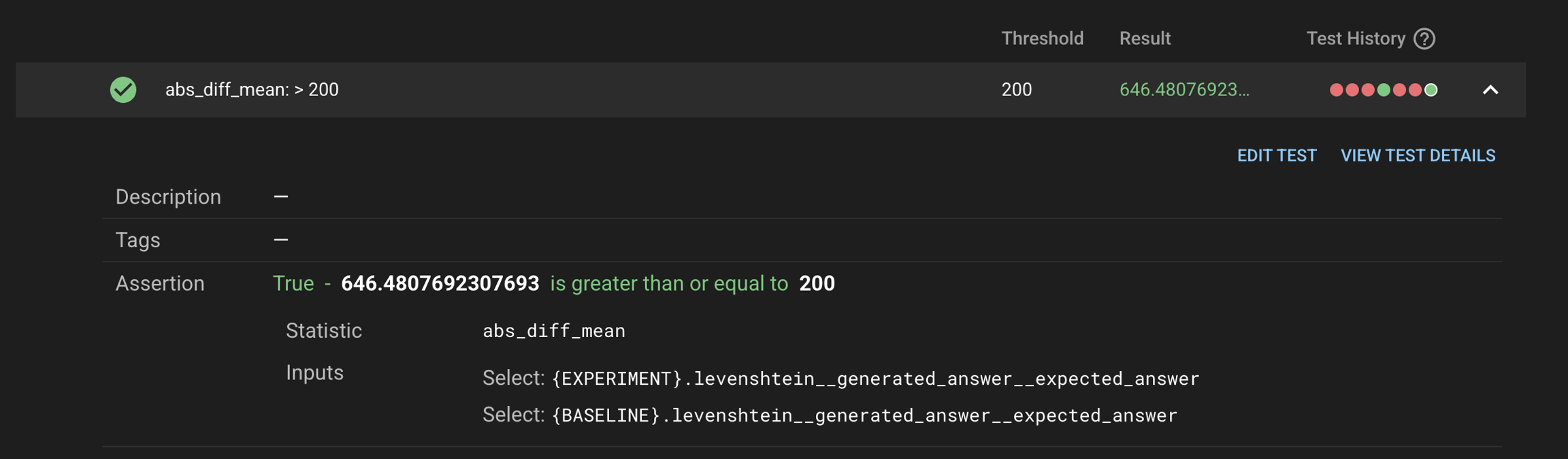 You can expand a test to see more information about it, edit it, or view its full history in more detail by clicking "View Test Details".