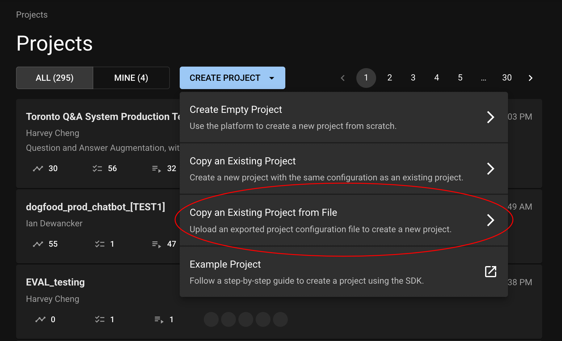 You can also just directly copy a given Project. Again, this can be done via the UI or the SDK: