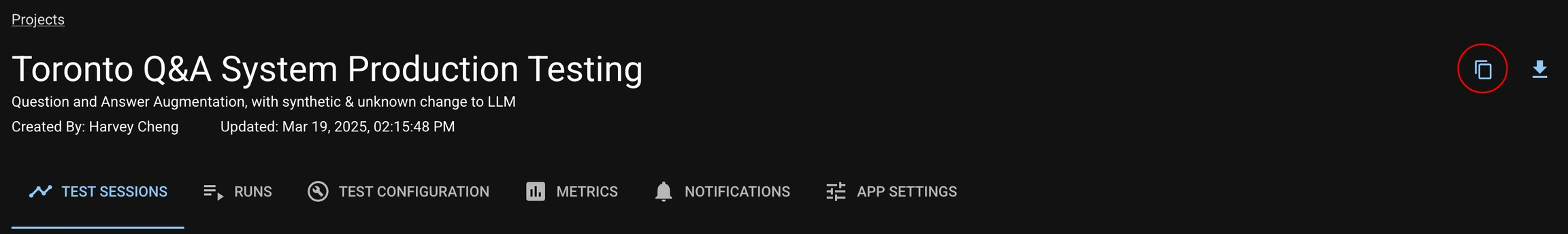 While viewing a Project, you can click the copy icon in the header to copy it to a new Project.