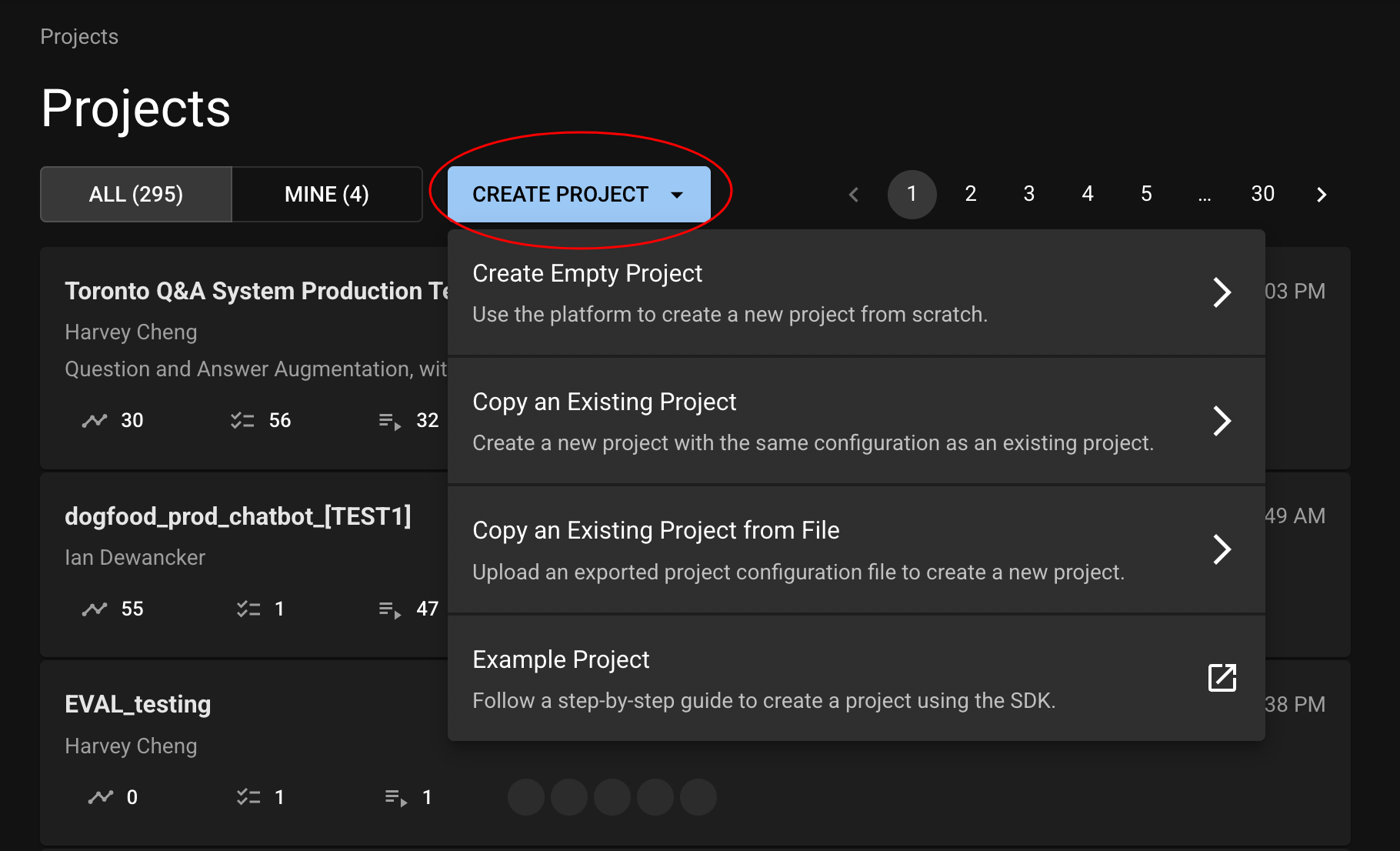 Simply click the "Create Project" button from the Project list view and choose an option.