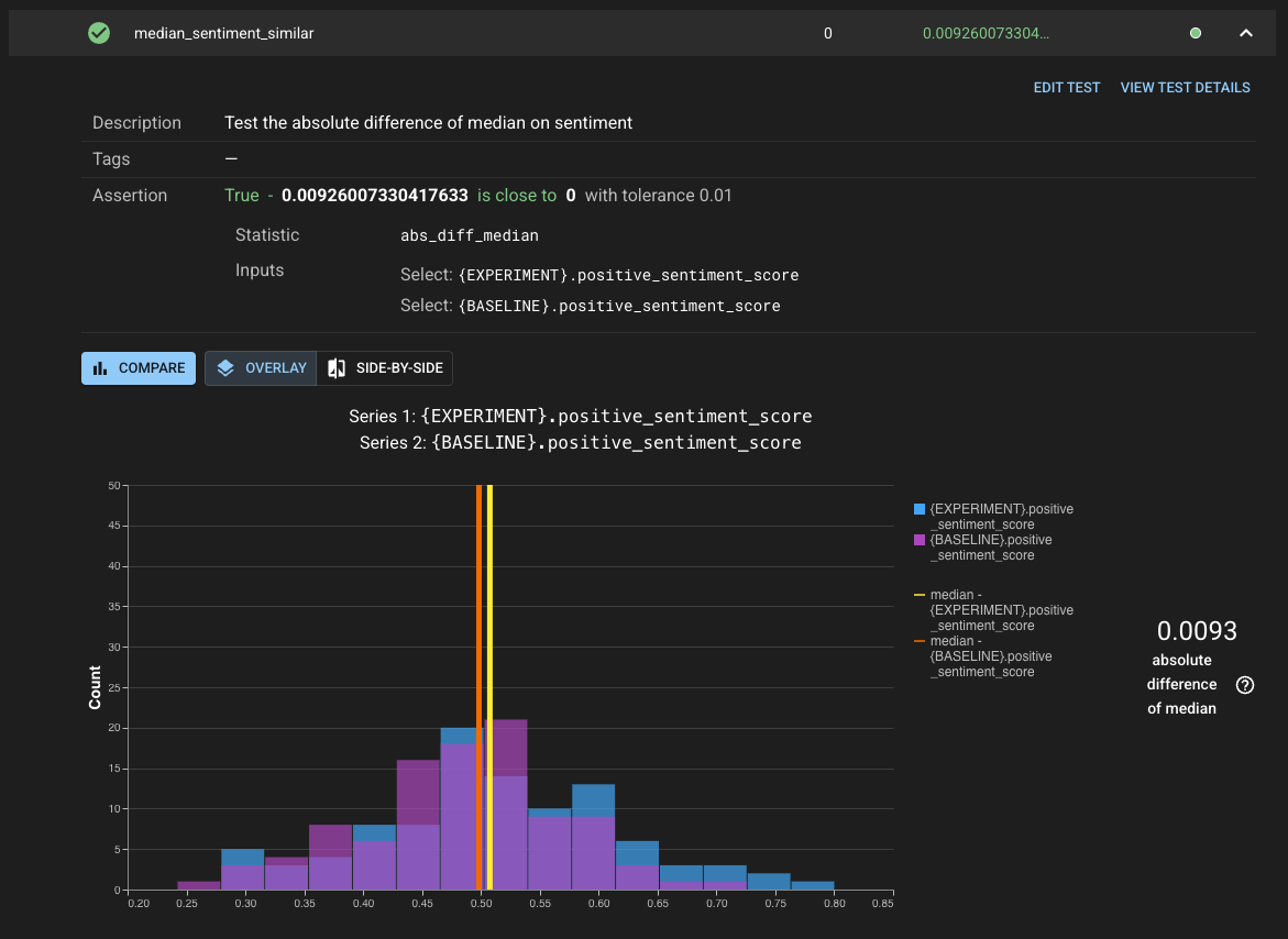 absolute difference of medianofpositive_sentiment_scoreagainst the baseline is close to0