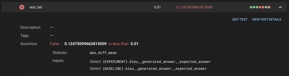 You can expand a test to see more information about it, edit it, or view its full history in more detail by clicking "View Test Details".