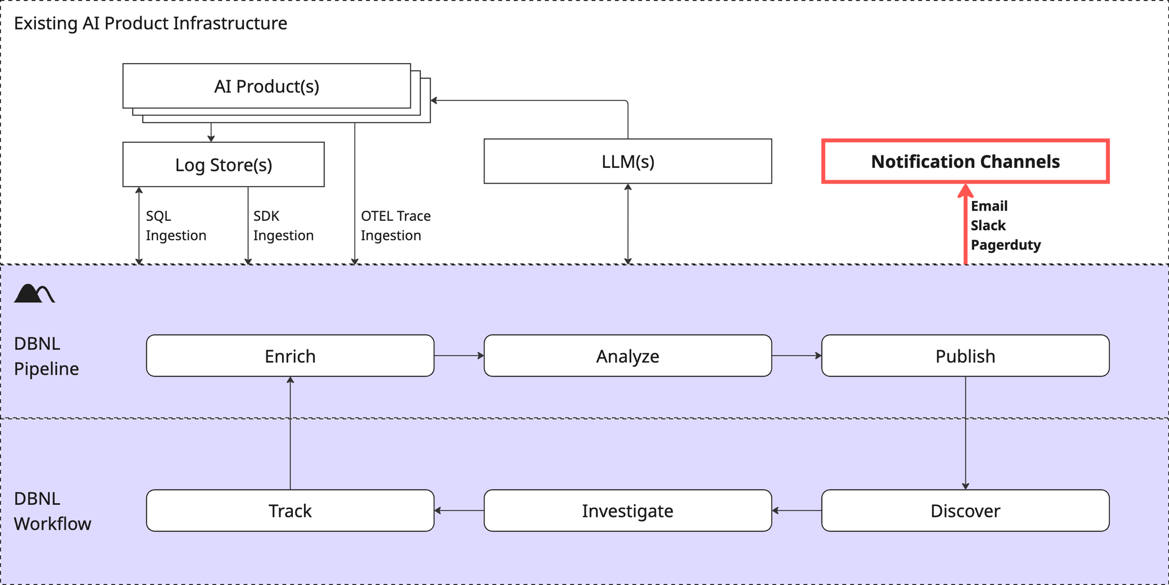 Supported notification channels include Email, Slack, and Pagerduty with more coming soon.