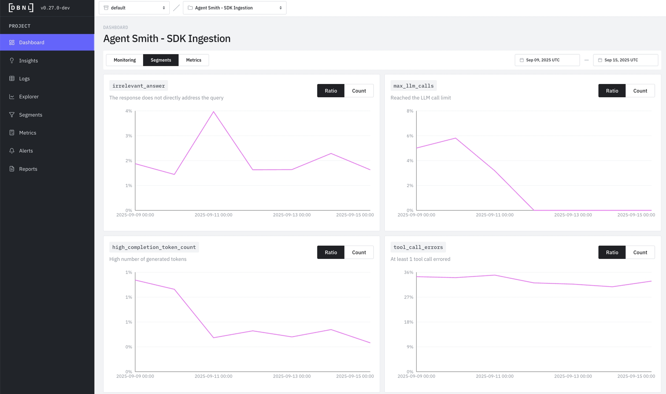 Segments Dashboard: Count graphs and statistics for all tracked Segments